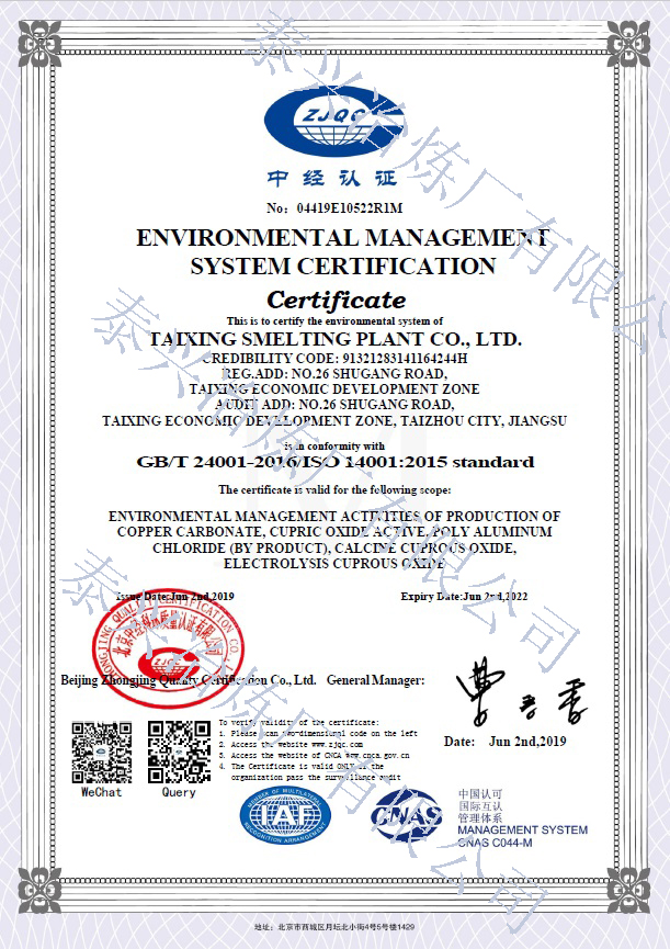 是我國(guó)《工業(yè)氧化亞銅》、《工業(yè)堿式碳酸銅》、《工業(yè)活性氧化銅》行業(yè)標(biāo)準(zhǔn)的起草單位